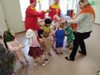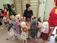 Вот и заканчивается зима, а это значит, что в нашем детском саду отмечают Масленицу. Несмотря на то, что мороз не дал нам провести развлечение на улице, оно прошло в спортивном зале, от этого оно было не менее весёлым.