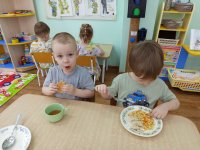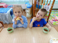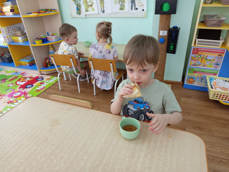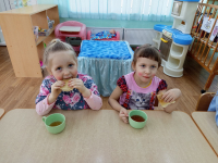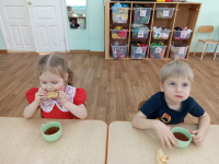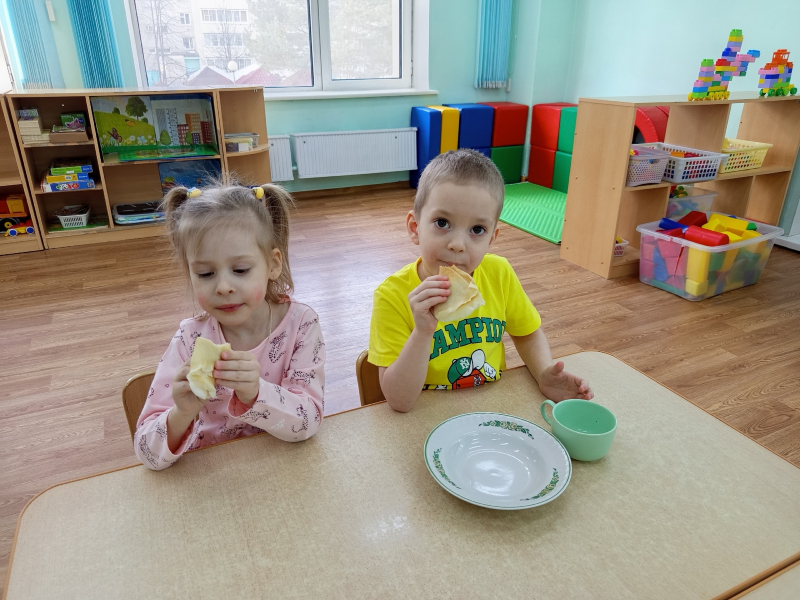 В конце развлечения дети водили хоровод, плясали, а в группах ели вкусные блины.