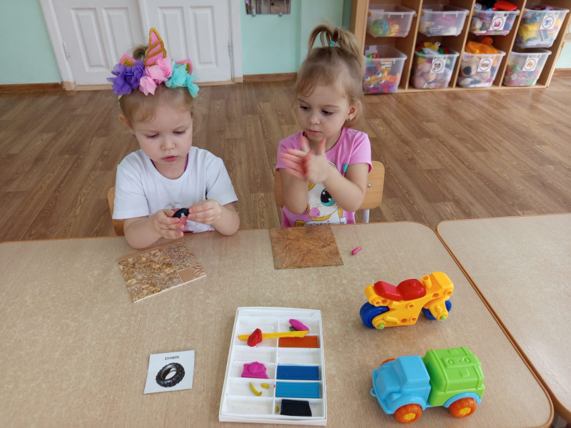 Лепка: «Колесо» (учить раскатывать «колбаски» из пластилина, соединяя их в круг; развивать мелкую моторику)
