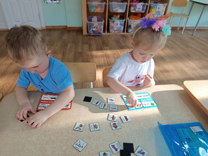 Д/и: «Каких сигналов светофора не хватает?» (на закрепление основных цветов светофора); «Назови машину на карточках»; нейроигра «Сделай по образцу»; «Можно-нельзя»; «Третий лишний» (на развитие памяти и внимания); «Найди пару», лото «Транспорт».