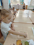В октябре мы собрали осенние листочки и делали из них аппликации по мотивам прочитанных сказок.