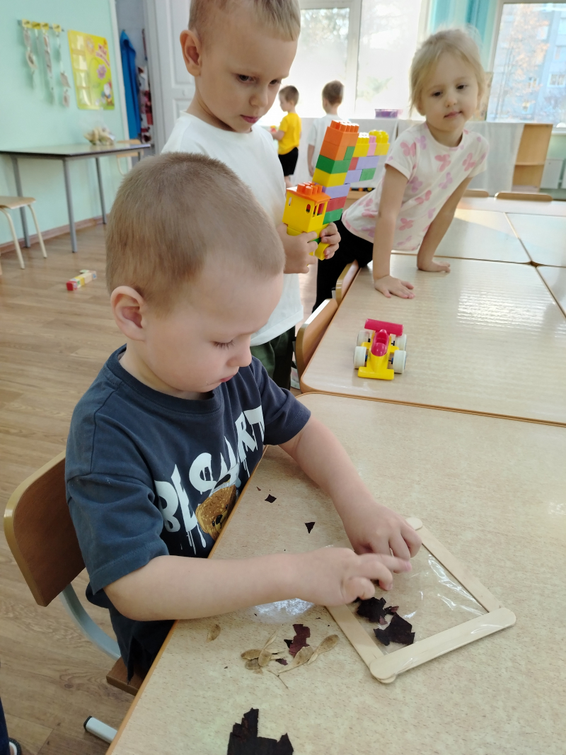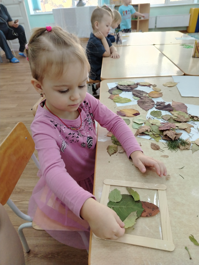 В октябре мы собрали осенние листочки и делали из них аппликации по мотивам прочитанных сказок.